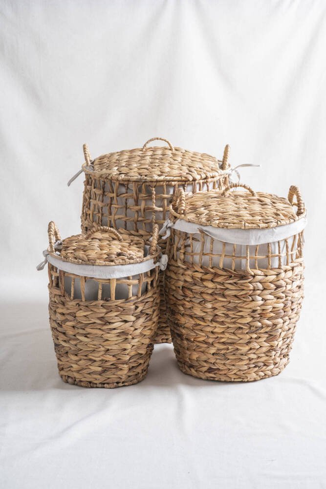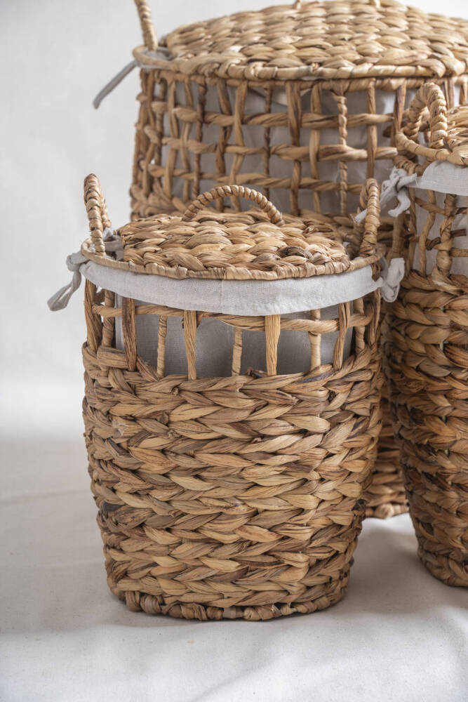 • Doğal hasır malzemesiyle üretilmiş, dayanıklı ve estetik bir tasarıma sahip çamaşır sepeti