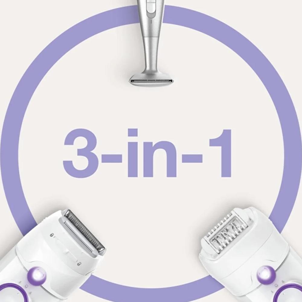 Tıraş başlığı, epilatörü tam fonksiyonlu bir tıraş makinesine dönüştürürken kırpma başlığı tercih etmeniz durumunda tüyleri düzeltmenize olanak tanır.