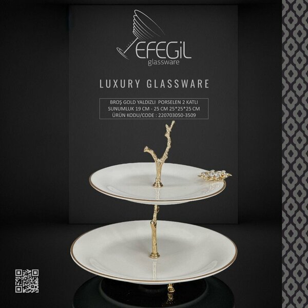 EFEGİL 3509 BROŞ GOLD YALDIZLI PORSELEN 2 KATLI SUNUMLUK