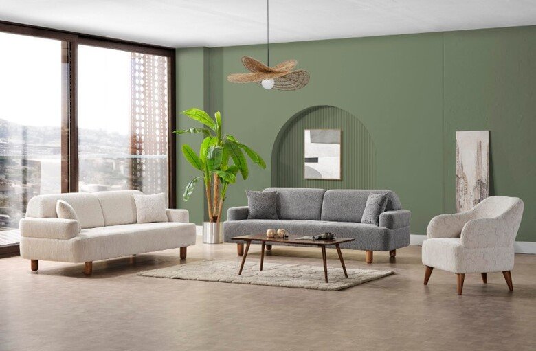 Bu takım, rahatlığı ve şıklığı bir arada sunarak oturma odanıza benzersiz bir karakter katacaktır.