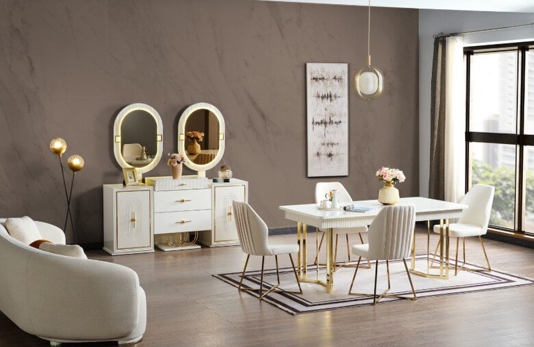 Dekoratif renk kombinasyonunu zengin ve nitelikli tasarım detayları ile buluşturan Marsel Konsept, gösterişli dokunuşlarla öne çıkan lüks tarzıyla göz dolduruyor.