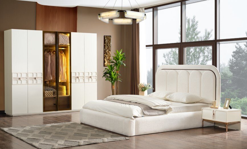 Evinizin en özel köşesi olan yatak odanız için tasarlanan bu zarif mobilya seti, modern tasarımı ve fonksiyonel detaylarıyla yaşam alanınıza fark katıyor. Geniş saklama alanları, şık başlık detayları ve sıcak aydınlatma dokunuşlarıyla hem konforu hem de estetiği bir arada sunuyor. Eşsiz bir uyku deneyimi ve düzenli bir yaşam alanı için ideal seçim!