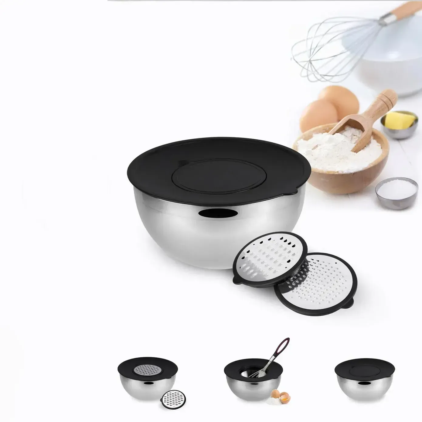 Paslanmaz çelikten üretilmiş çok amaçlı karıştırma ve saklama kabı olan Demre 3 in 1, bir ürün ile 3 ayrı özellik sunmaktadır; rendeler, karıştırır, saklar.