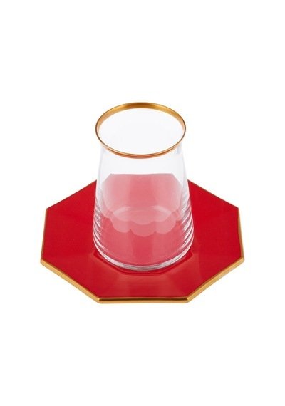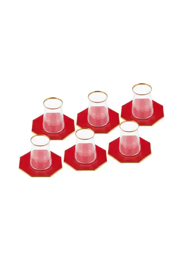 EMSAN EMSAN MİLA 12 PRÇ SEKİZGEN ÇAY SETİ KIRMIZI