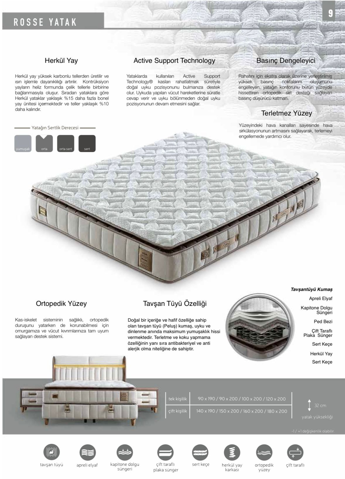- Ergonomik Tasarım: Bel ve sırt ağrılarınızı azaltmaya yardımcı olur. Vücudunuzu doğru pozisyonda destekleyerek rahat bir uyku sağlar ve güne dinlenmiş başlarsınız.