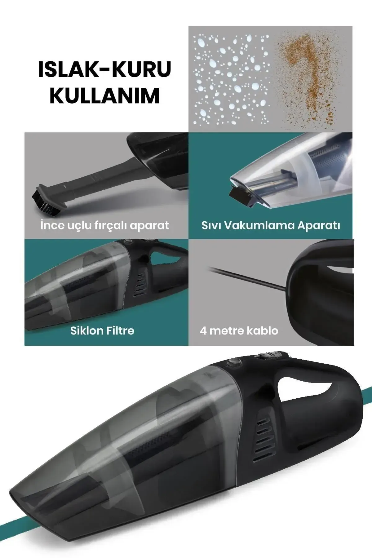 • Daha rahat ve pratik temizlik için 4m kablo uzunluğu