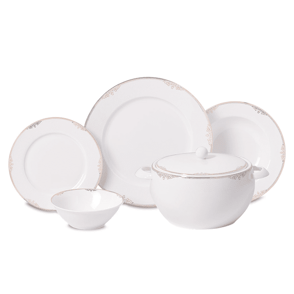 - 60 Parça Komple Set: Eksiksiz bir sofra için ihtiyacınız olan her şey tek bir sette! Misafirlerinizi ağırlarken ya da aile yemeklerinizde her zaman tam bir sunum yapabilirsiniz.