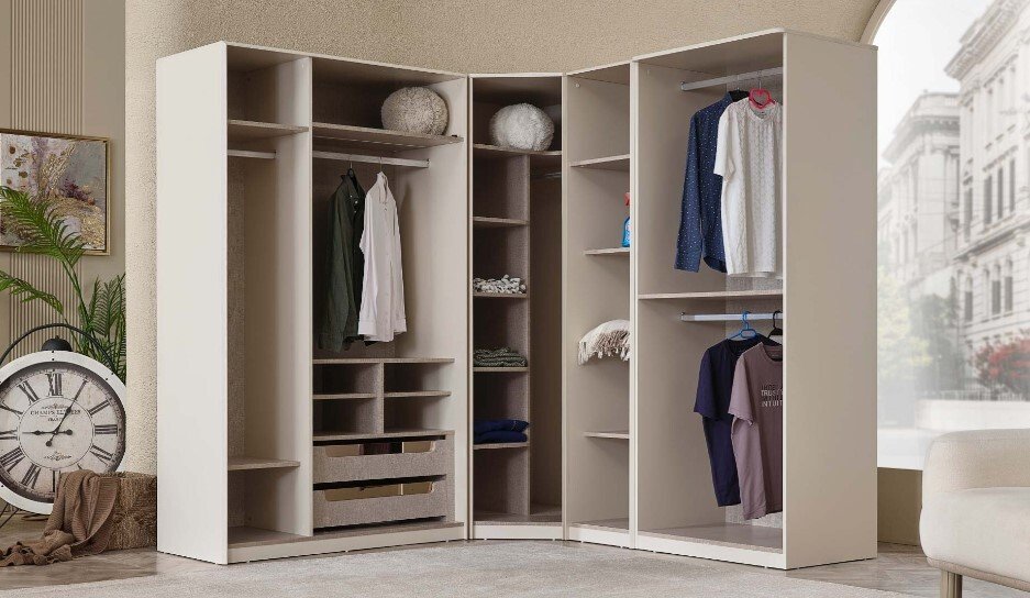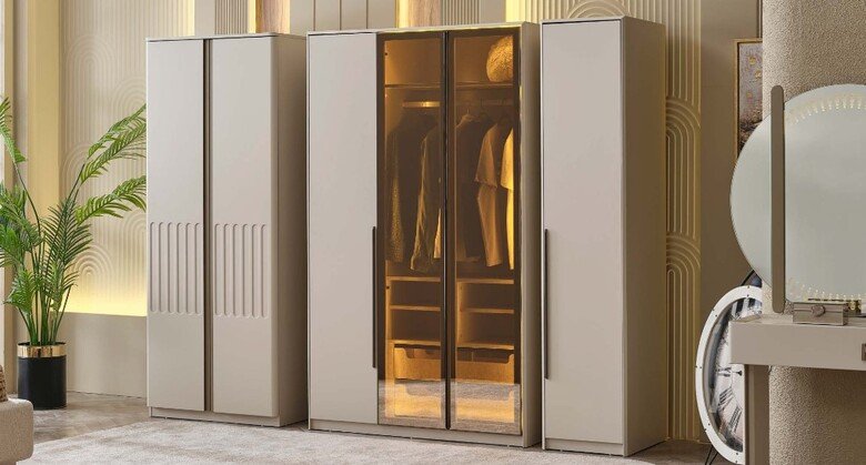 Geniş gardırop, konforlu yatak başlığı ve kullanışlı komodinleri ile hem düzen hem de estetik sağlar.
