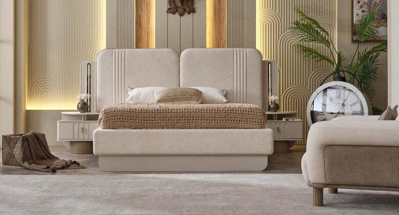 Doğal renk tonları ve modern çizgileriyle huzurlu bir uyku ortamı yaratır.