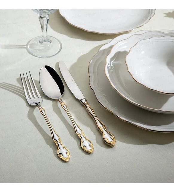 Adriana Altın Sade 12 Kişilik 89 Parça Kutulu Çatal Kaşık Bıçak Takımı
