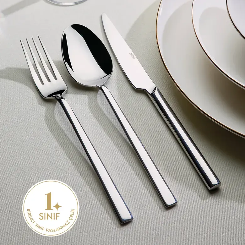 - Birinci Sınıf 304 Paslanmaz Çelik (18/10 Krom-Nikel): Dalyan Sade 12 Kişilik 72 Parça Çatal Kaşık Bıçak Takımı, yüksek kalite 304 paslanmaz çelikten üretilmiştir. Bu malzeme, uzun ömürlü, paslanmaz ve dayanıklı kullanım sağlar, aynı zamanda yüksek parlaklık ve estetik sunar.