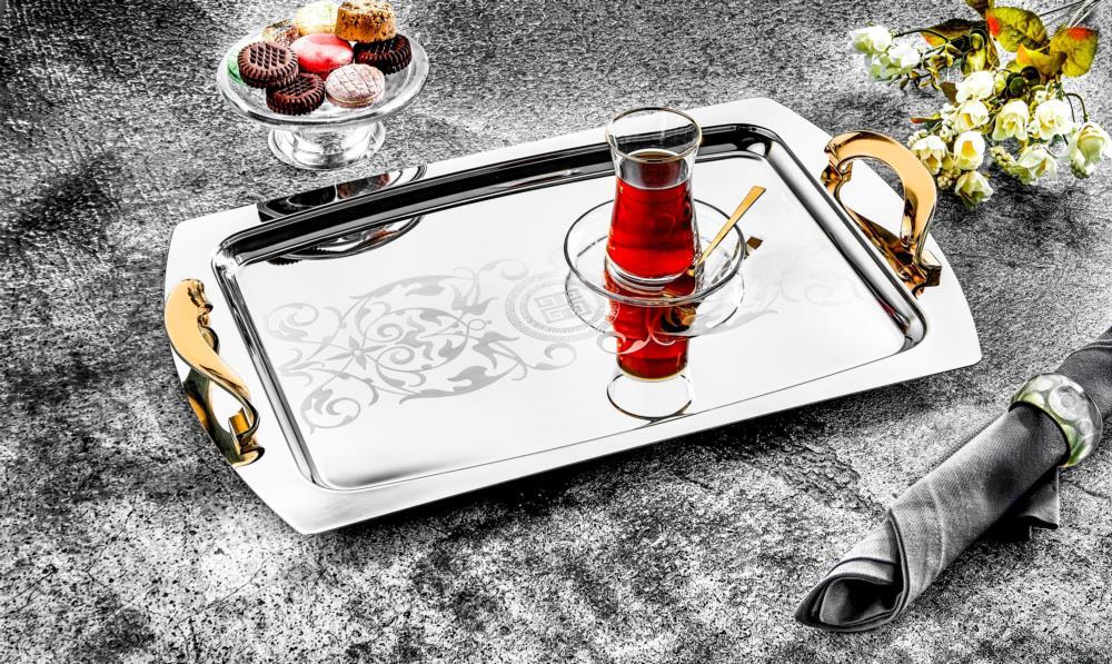NEHİR LARA ALTIN KULPLU ÇAY TEPSİ
