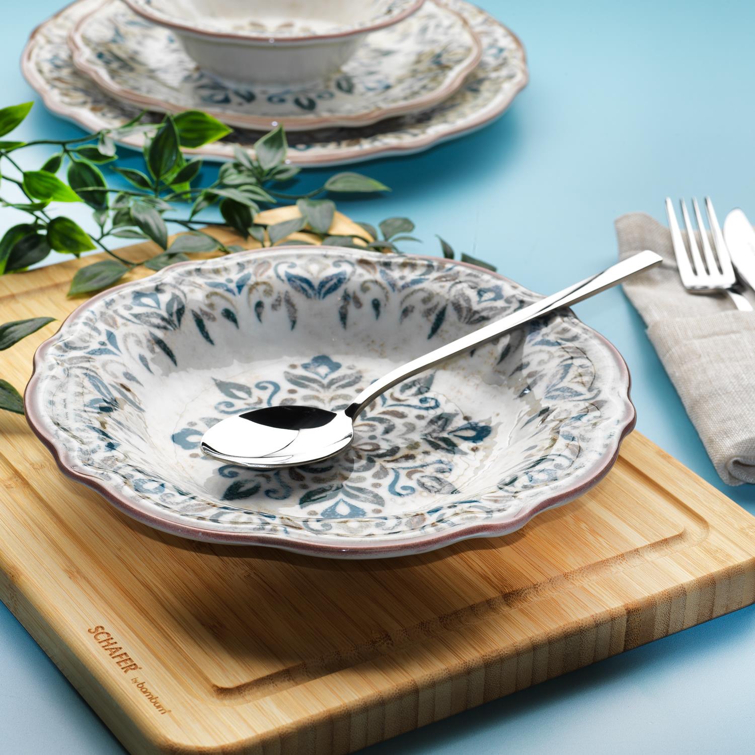 • 6 adet 22 cm yemek tabağı,