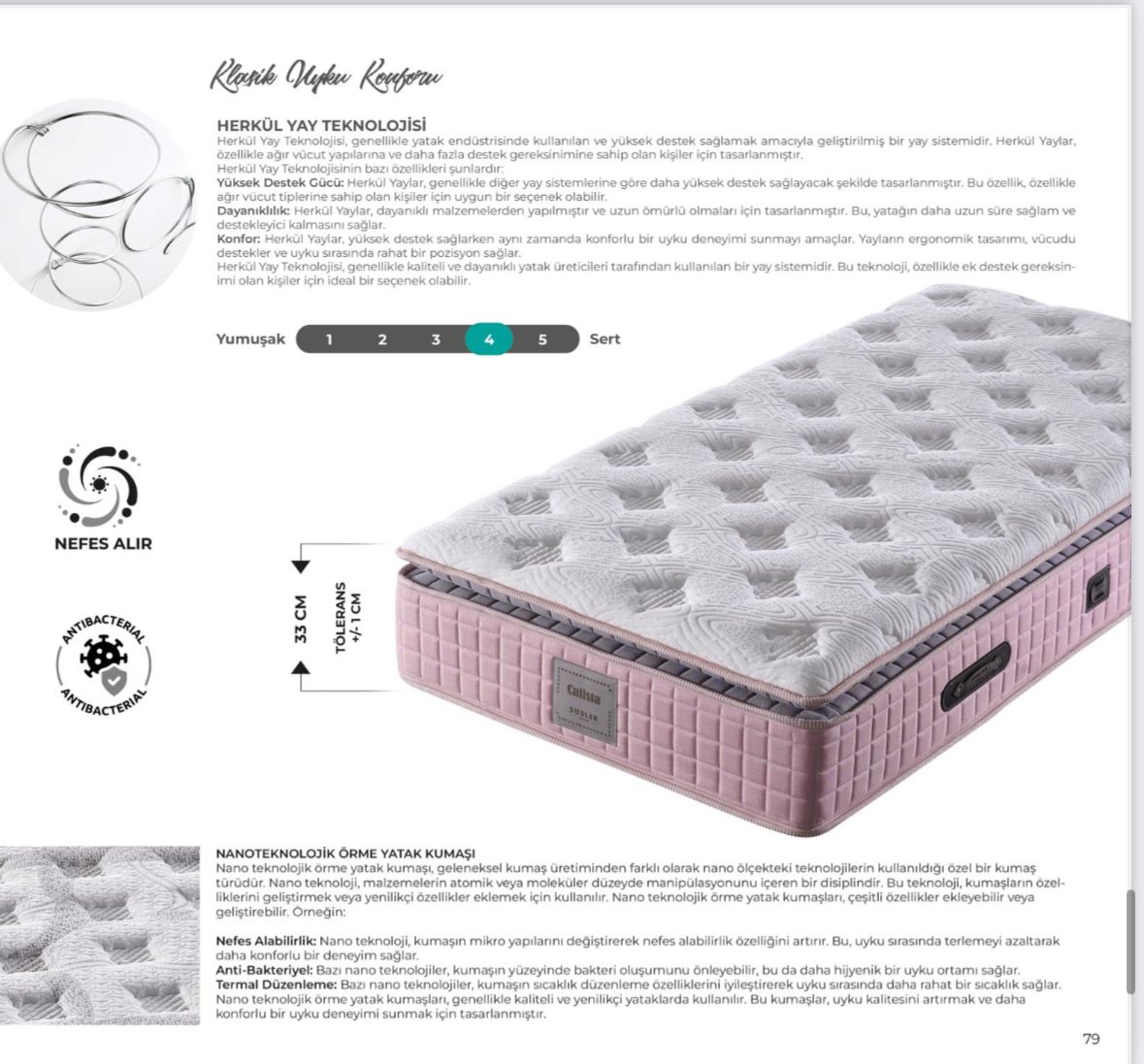 - Yüksеk Kalitеli Malzеmеlеr: Sağlığa zararlı hiçbir madde içermeyen, sertifikalı malzemeler kullanılarak üretilmiştir. Huzurlu ve sağlıklı bir uyku deneyimi sunar.
